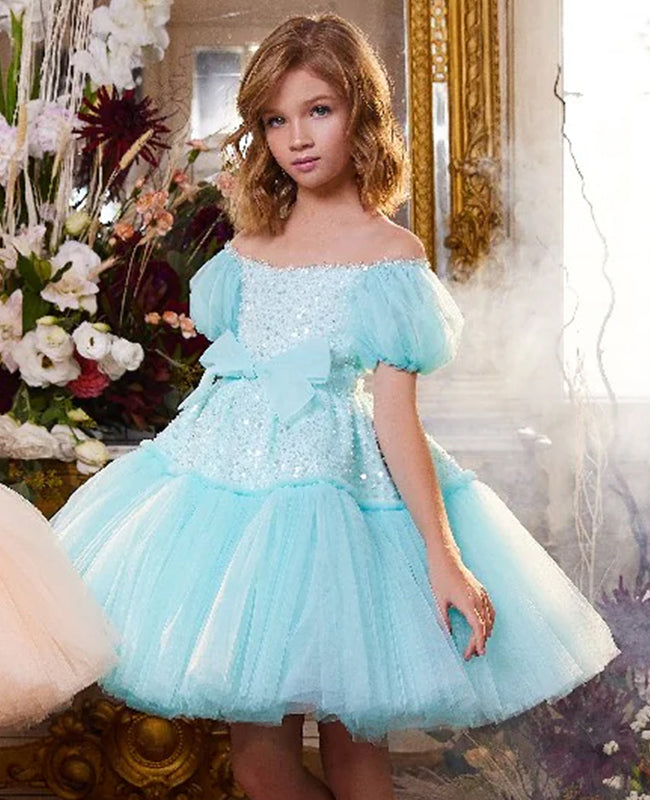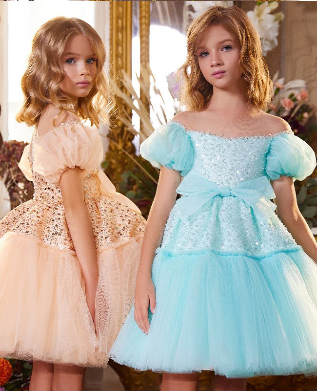 Dress your little girl like royalty with our Kids Princess Dresses. In pink and turquoise, these dresses feature puff sleeves, a full tulle skirt, and sparkling embellishments for a touch of magic. Whether for weddings, birthdays, or celebrations, our comfortable yet sophisticated design will make your child shine and create unforgettable memories.